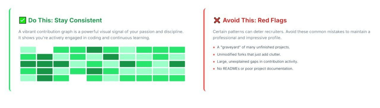 Faking Contributions: Don't try to artificially inflate your contribution graph; it's easily spotted and undermines credibility.